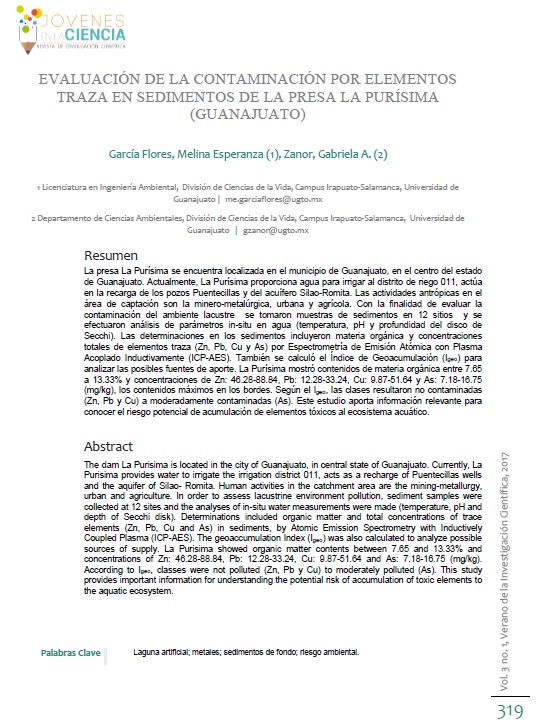 Esta investigación mide el nivel de contaminación de la presa La Purísima (Gto.), a través de la cuantificación de las concentraciones totales de elementos traza en sedimentos de fondo de la presa.