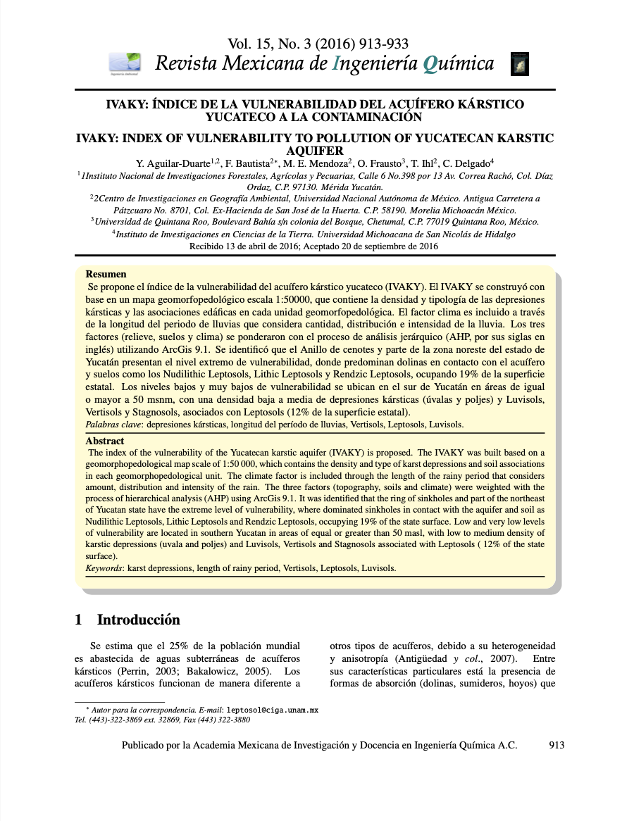 El estudio propone el índice IVAKY para evaluar la vulnerabilidad del acuífero kárstico de Yucatán, integrando relieve, suelos y clima, y localiza zonas con riesgo extremo de contaminación.