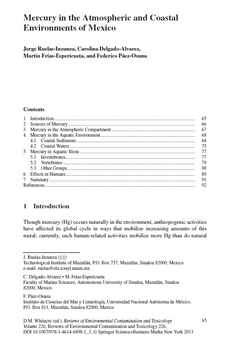 El presente estudio revisa las fuentes naturales y antropogénicas de contaminación por Hg en México, aborda los niveles de Hg que se presentan en los ambientes atmosférico y acuático y la interacción de éste con la biota.