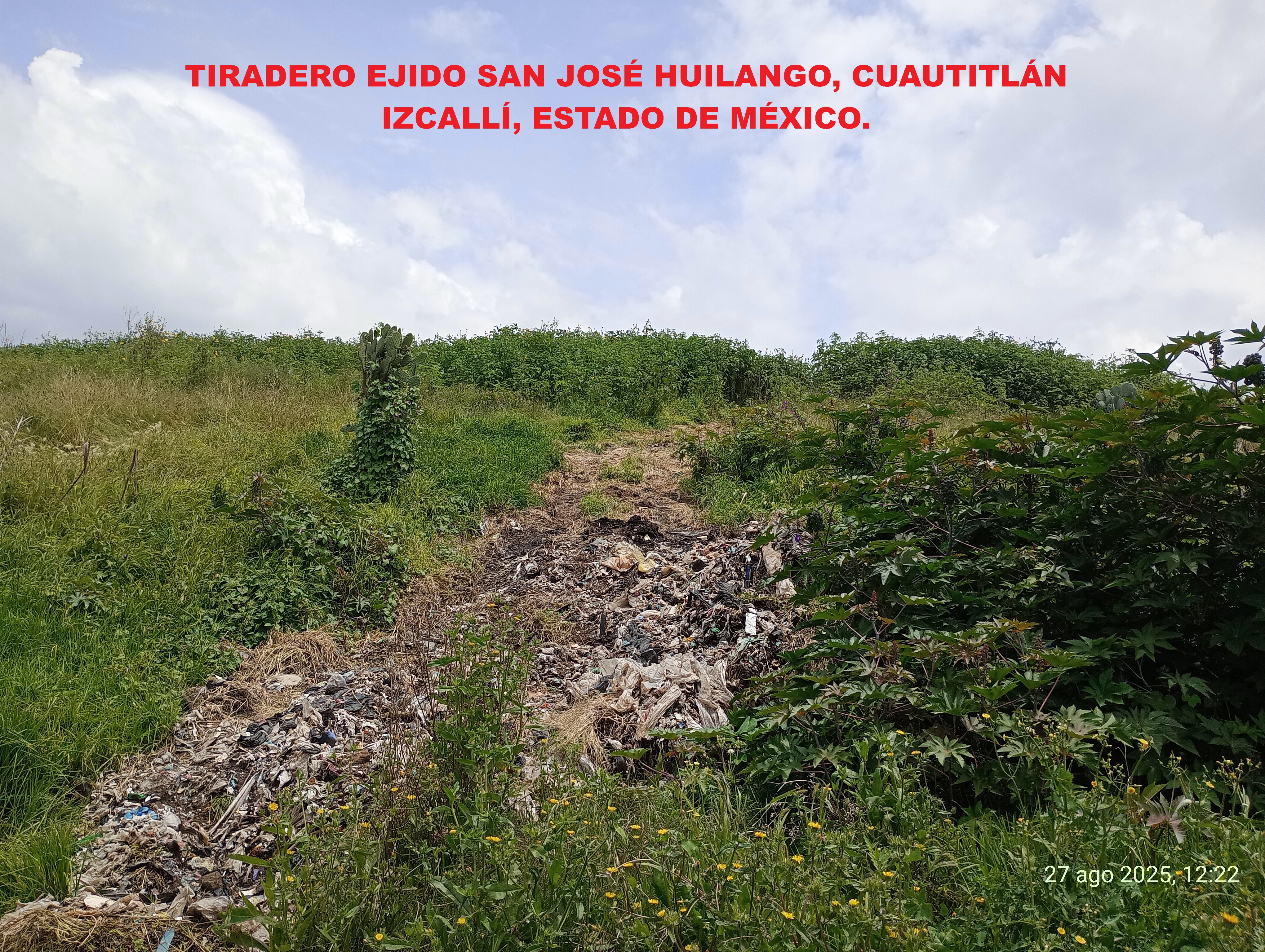 En San José Huilango, ubicado en Cuautitlán Izcalli, edo. de México, enfrentamos un grave problema de contaminación causado por tiraderos a cielo abierto. Esta situación no solo afecta nuestro entorno natural —contaminando el aire, la tierra y las aguas federales— sino que también tiene consecuencias devastadoras para nuestra salud y la de nuestros animales. La exposición a estos desechos ha provocado un aumento en la incidencia de enfermedades graves, como problemas respiratorios, muertes súbitas de infantes, malformaciones congénitas, infecciones oculares y auditivas, dermatitis, distintos tipos de cáncer, embarazos de alto riesgo, alergias e infecciones urinarias. Estas condiciones de salud generan costos elevados para la atención médica de la población.