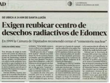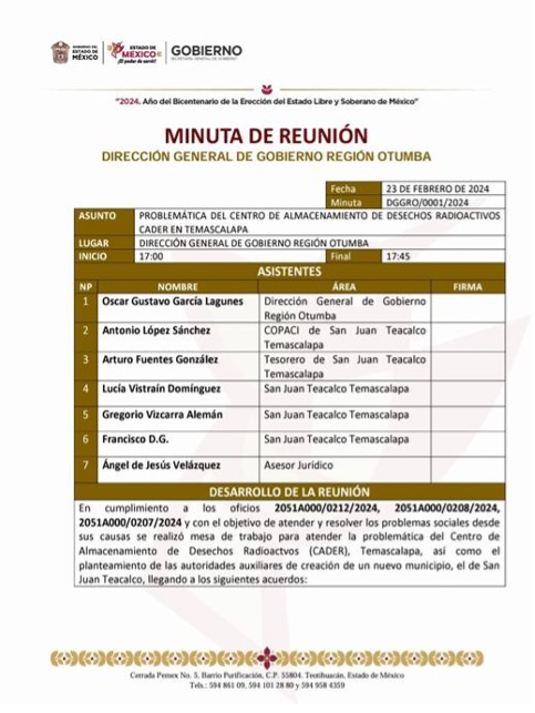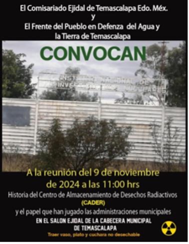 En 1970, el Centro de Almacenamiento de Desechos Radiactivos (CADER), ubicado en Temascalapa, Estado de México, comenzó a recibir desechos radiactivos de todo el país para lo que se planteó como un confinamiento temporal. Sin embargo, esta condición temporal ha perdurado por más de cincuenta años. Actualmente, el CADER alberga 96 toneladas de varilla contaminada con cobalto-60 (Co-60), además de tres almacenes que contienen desechos radiactivos en bidones de acero de 200 litros.